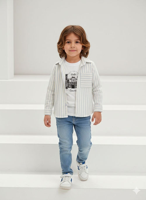 Collection complète pour petits garçons de 1 à 9 ans. T-shirts, ensembles, vestes et pantalons. Des vêtements confortables et robustes pour jouer et grandir.